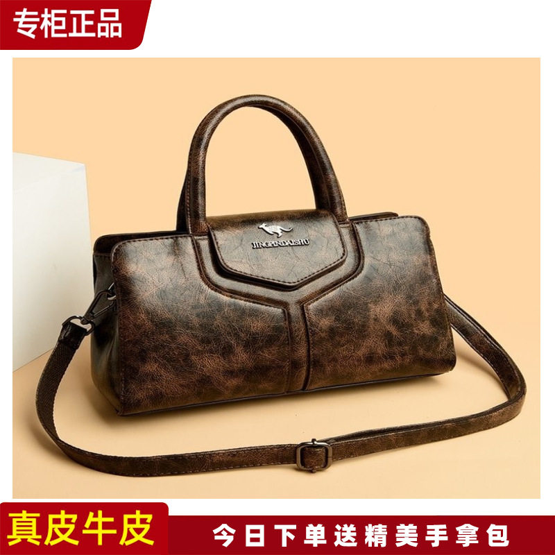 凯迪袋鼠时尚女士2026新款中年手提包真皮包包女妈妈包牛皮斜挎包