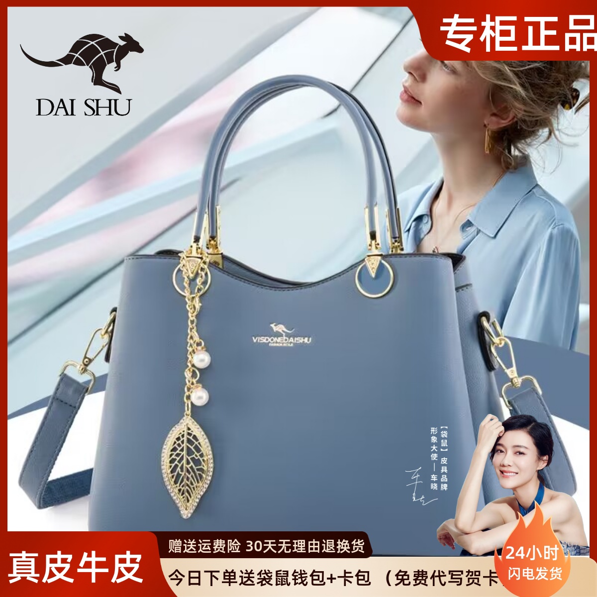 袋鼠女士真皮包包女2025新款休闲百搭大容量手提中年妈妈包单肩包