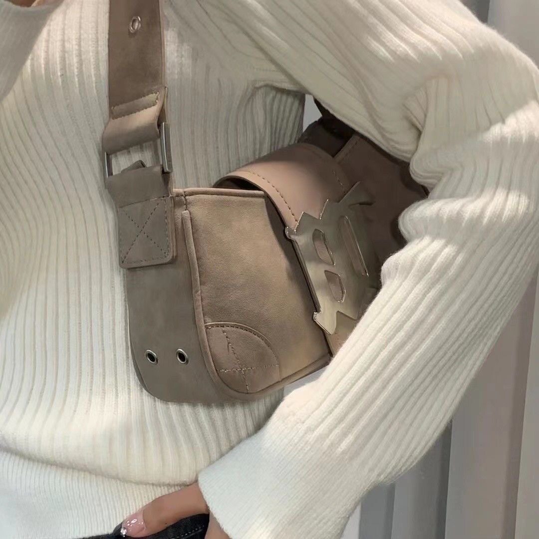 复古麂皮包女2025新款小众设计手提斜挎包百搭高级感绑带磨砂包