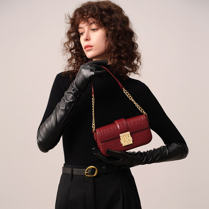GXFMOD小众品牌高级感牛皮包包女红色法棍包2025春夏洋气腋下包