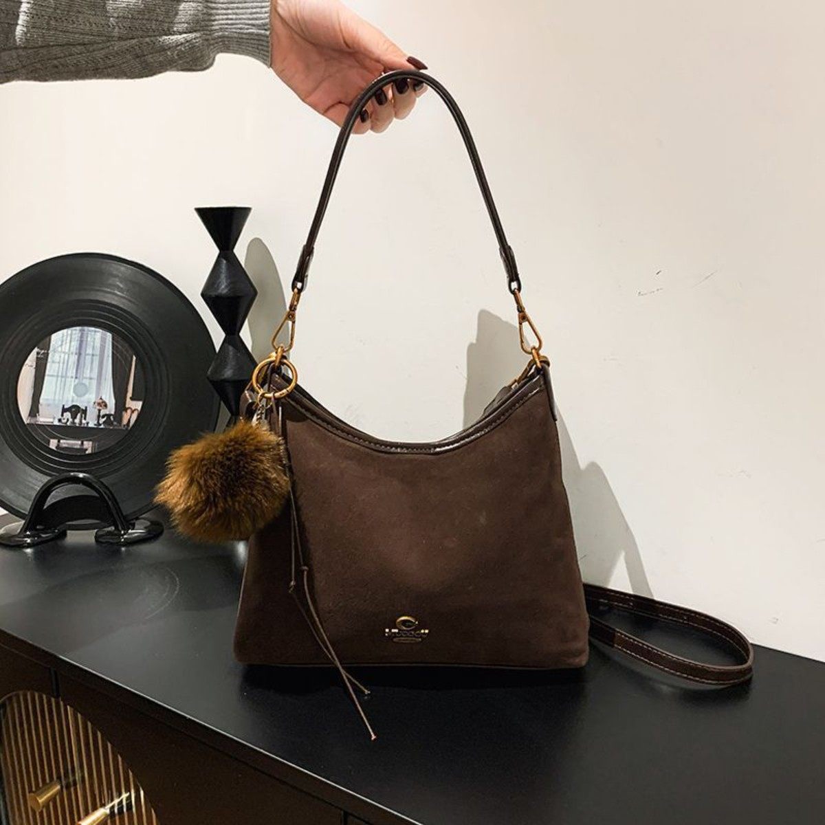 ARJOMORY原创设计麂皮绒月牙女包2025早秋上新大容量百搭单肩包