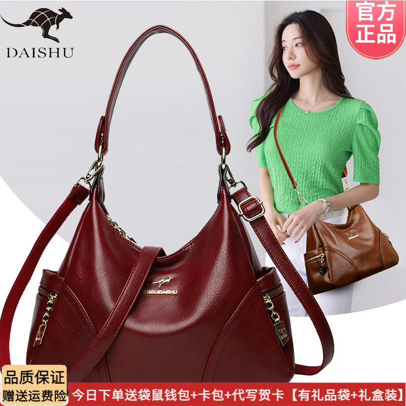 袋鼠品牌女包2026新款手提斜挎包时尚大气软皮包送礼妈妈生日礼物