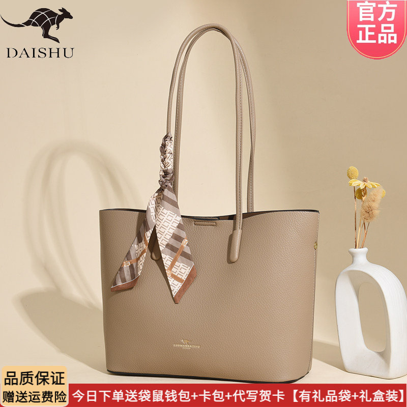 正品袋鼠皮包包包女2026新款大气时尚托特包软皮单肩软皮包送丝巾