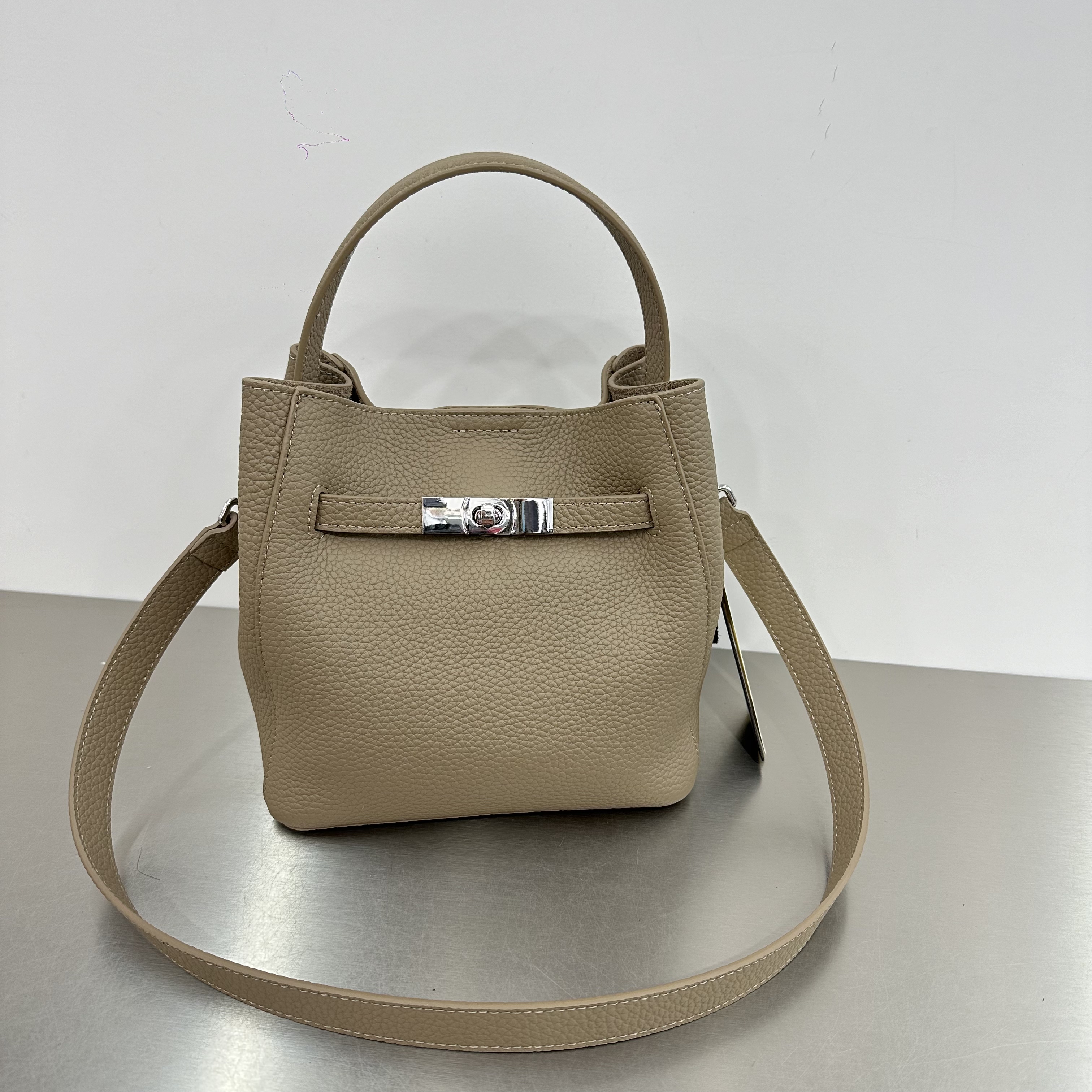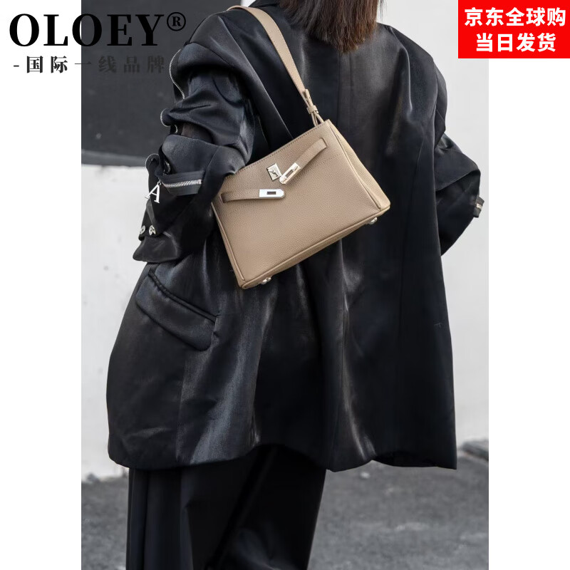 OLOEY国际一线品牌轻奢牛皮凯莉包女百搭单肩腋下真皮包感2025冬复古手 灰