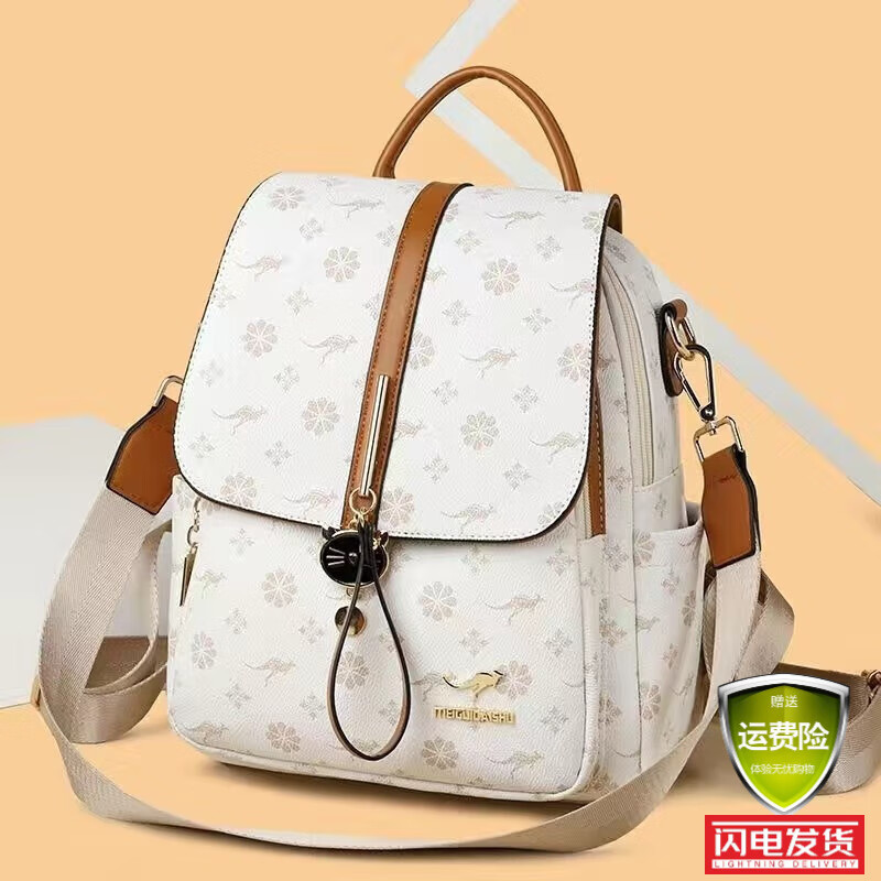 金伯利袋鼠品牌2025新款牛皮双肩包女时尚旅游背包女士软皮包旅行大容量 大号白配黄