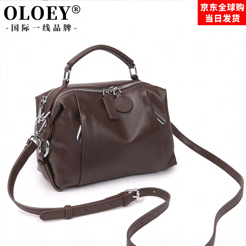OLOEY国际一线品牌头层植鞣牛皮包包女2025新款通勤真皮枕头包大容量手 咖啡色