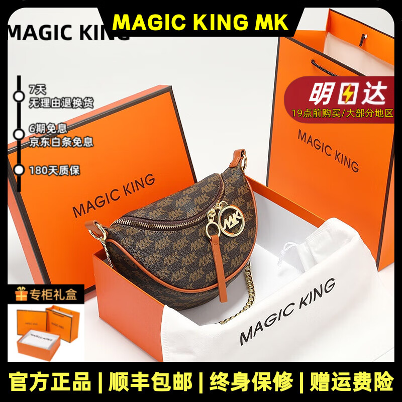 MAGIC KINGMK轻奢品牌牛皮包包女包高级感饺子包老花胸包腰包链条斜挎包 咖啡/棕色大号【精美礼盒+礼袋】 【精美礼盒+礼袋】