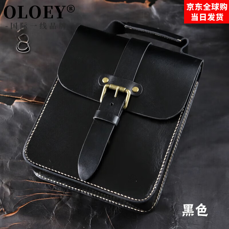 OLOEY国际一线品牌手作厚皮包 头层牛皮手工包男包单肩包真皮斜挎包平 黑色【牛皮厚又硬又挺有型】