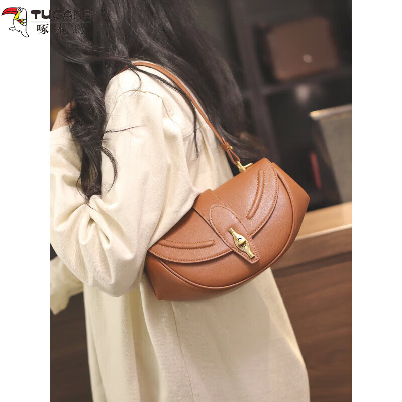 啄木鸟(TUCANO)真皮包包女包大容量单肩斜挎包情人节生日圣诞礼物送老婆女朋友 礼物礼盒装 焦糖色