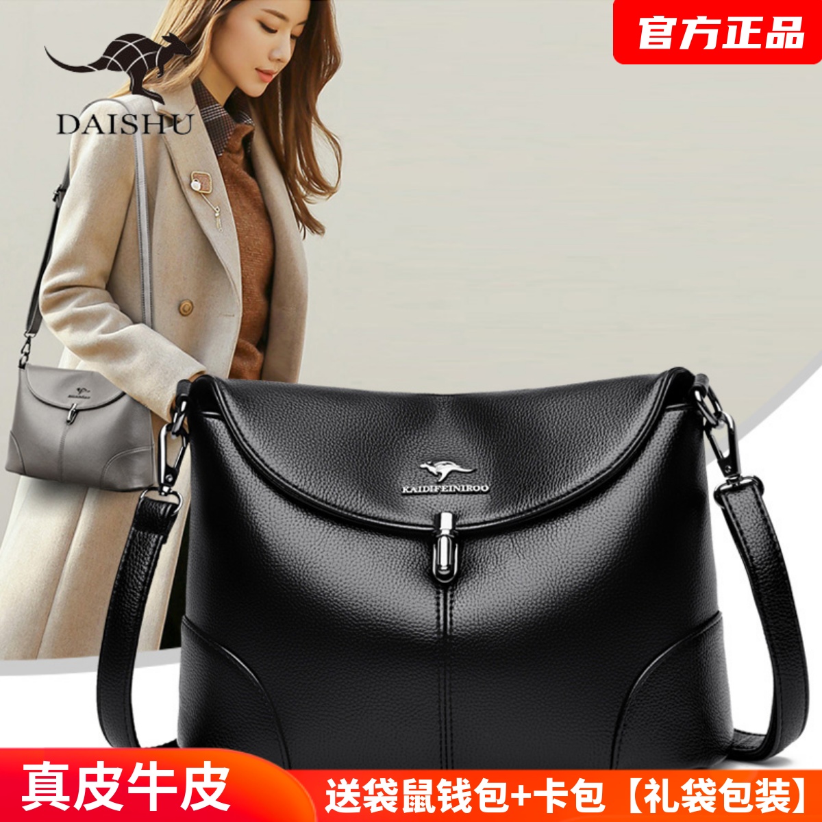 袋鼠真皮中老年女包2025新款大容量婆婆妈妈包单肩斜挎软皮牛皮包