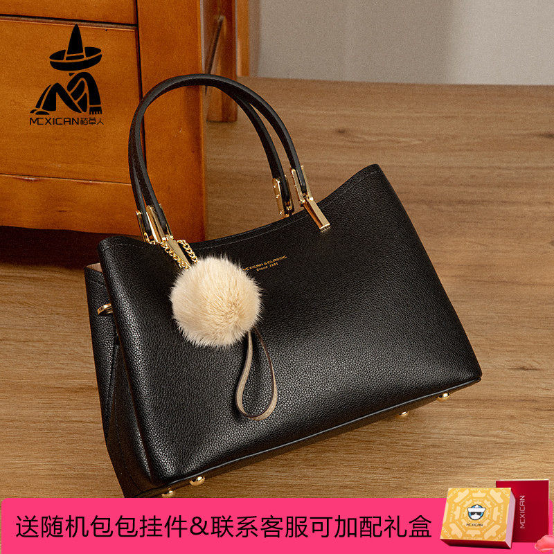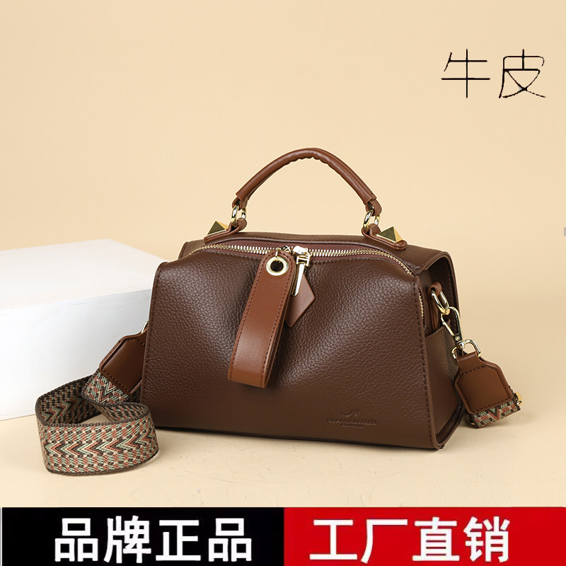 稻草人包包女2026新款牛皮包包时尚女士手提包拉链单肩包盒子包包