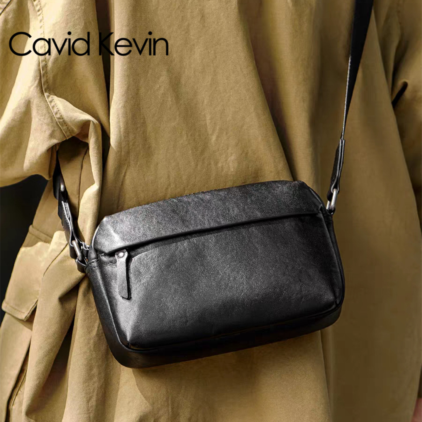 Cavid Kevin男士牛皮单肩包简约真皮包男包小包潮牌手机包相机包
