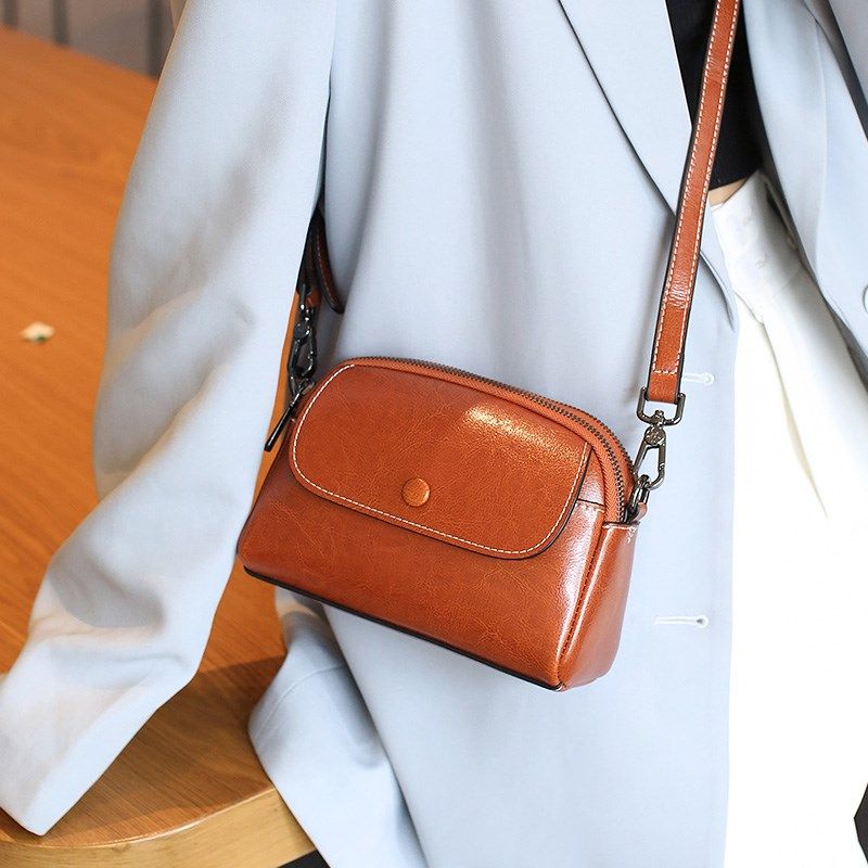 真皮包包植鞣牛皮2025经典简约时尚气质女包手提肩斜挎复古邮差包