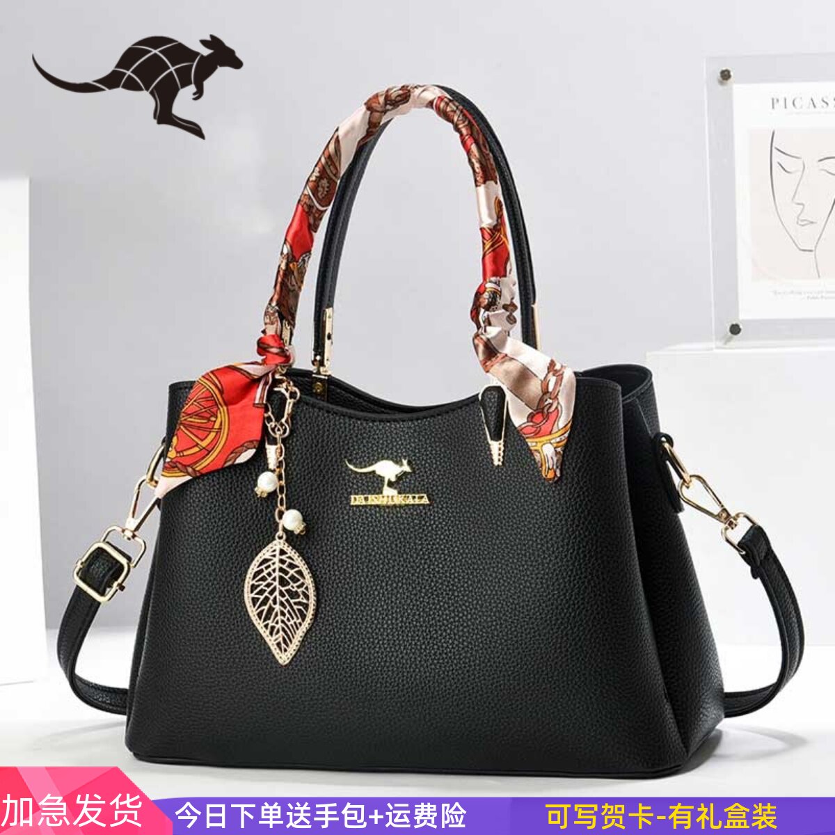 正品袋鼠女包皮包2026新款中年包时尚妈妈斜挎包软皮大容量单肩包