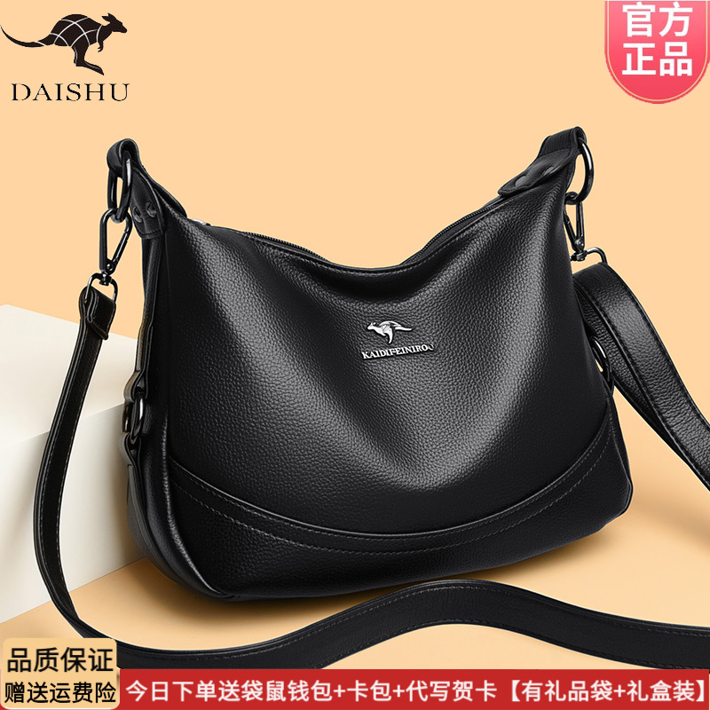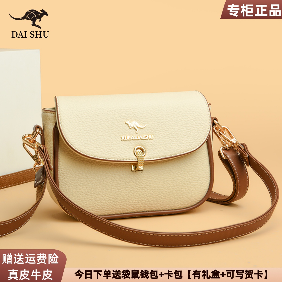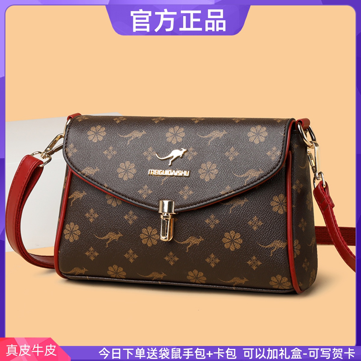 袋鼠真皮女包斜挎包大容量妈妈包包女式2025新款手提单肩包牛皮包
