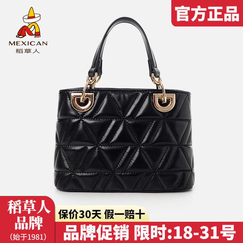 稻草人牛皮包包2025新款手拎包菱格托特包百搭女士单肩斜挎包正品