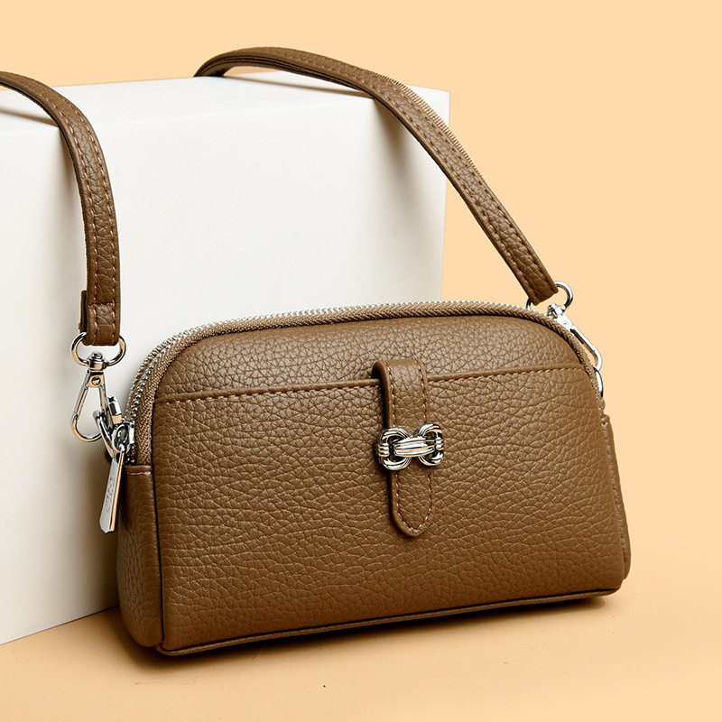 2026新款时尚手拿单肩斜挎包双层软皮包手机包耐磨防水荔枝纹包包