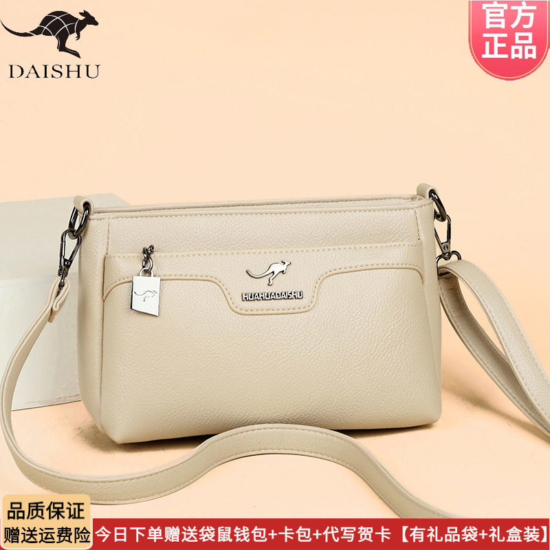 袋鼠专柜皮包单肩斜挎包女2026新款百搭中年妈妈包大容量软皮小包