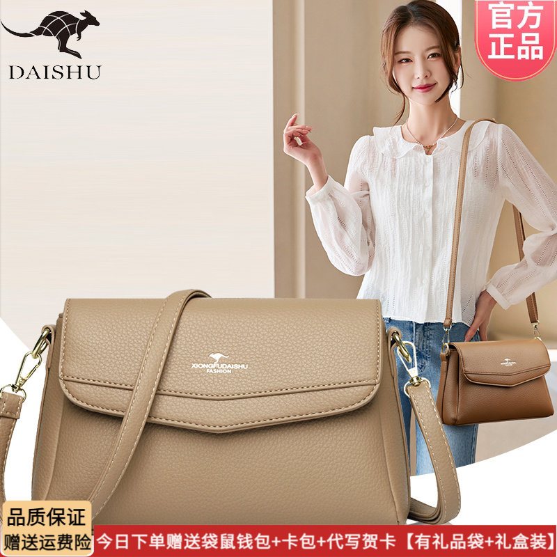 袋鼠正品皮包包包女2025新款中年妈妈包百搭软皮软包单肩斜挎女包