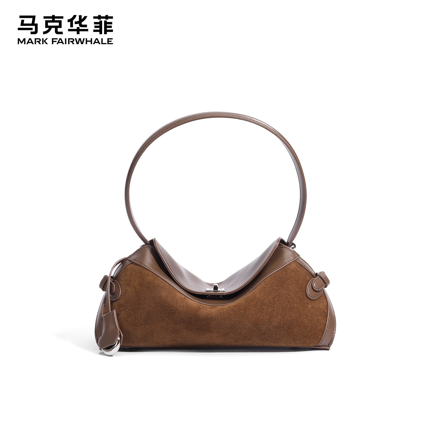 马克华菲时尚百搭磨砂牛皮包女大容量单肩斜挎包休闲通勤腋下包