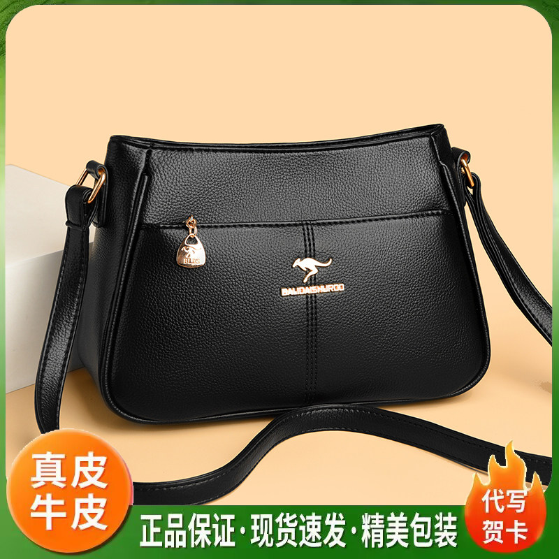 袋鼠正品女包2026手提包新款真皮中年妈妈包纯色百搭时尚斜挎皮包
