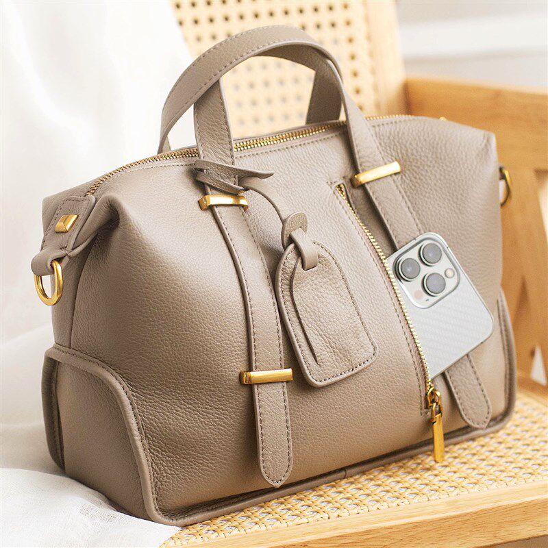 真皮包包女2024新款春夏纯色软把手提双层拉链大容量单肩斜挎包包