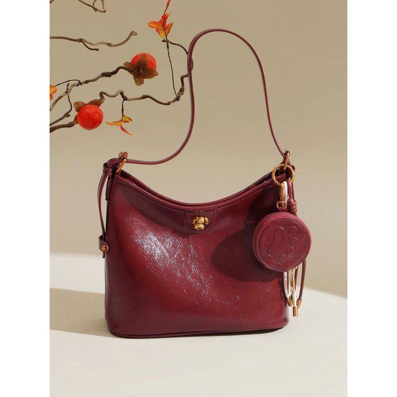 女士真皮包包2025新款休闲腋下包牛皮复古斜挎百搭单肩女包高级感