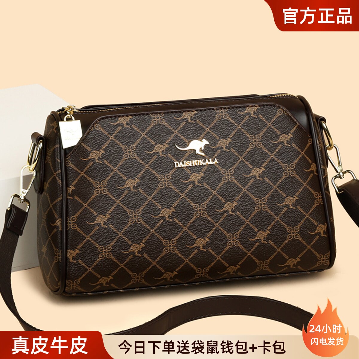袋鼠正品真皮手提包女2025新款简约百搭单肩包中年妈妈斜挎牛皮包