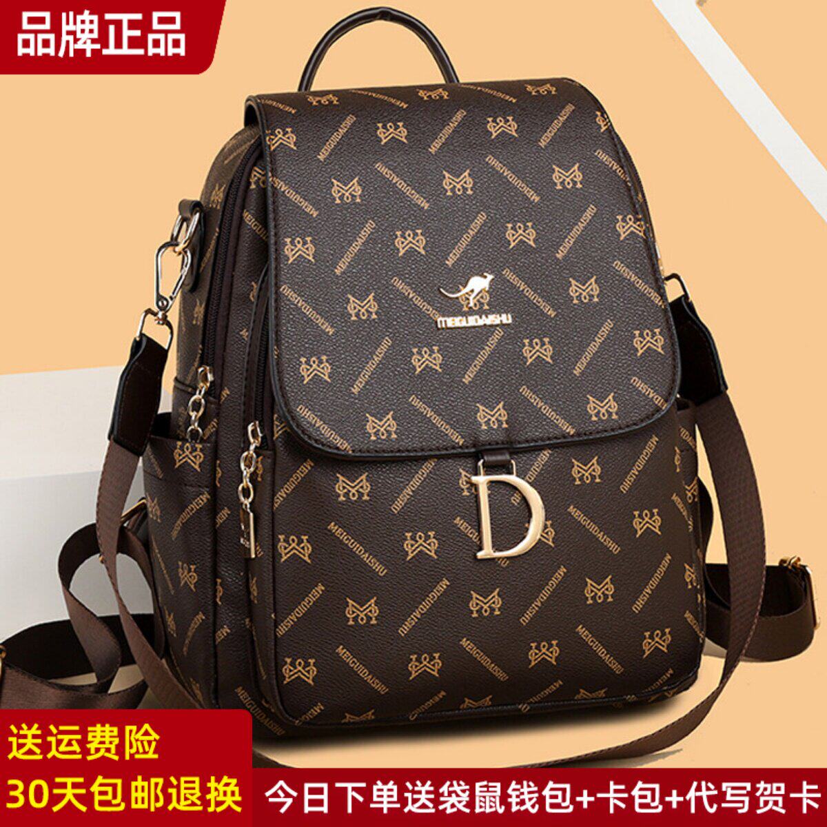 正品袋鼠双肩包女皮包2026新款时尚旅游轻便背包妈妈款大容量软皮