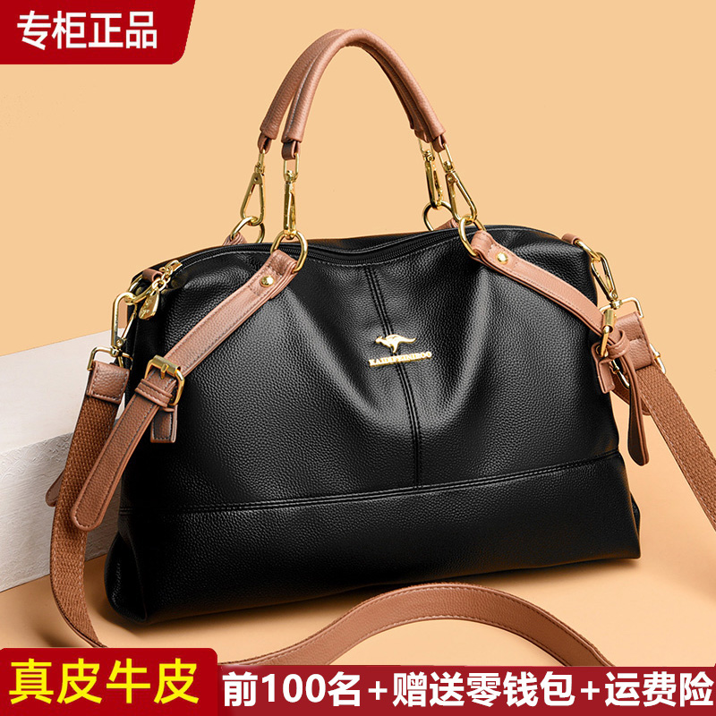 袋鼠品牌女士手提包皮包软皮2025新款高级感大气百搭妈妈包送礼