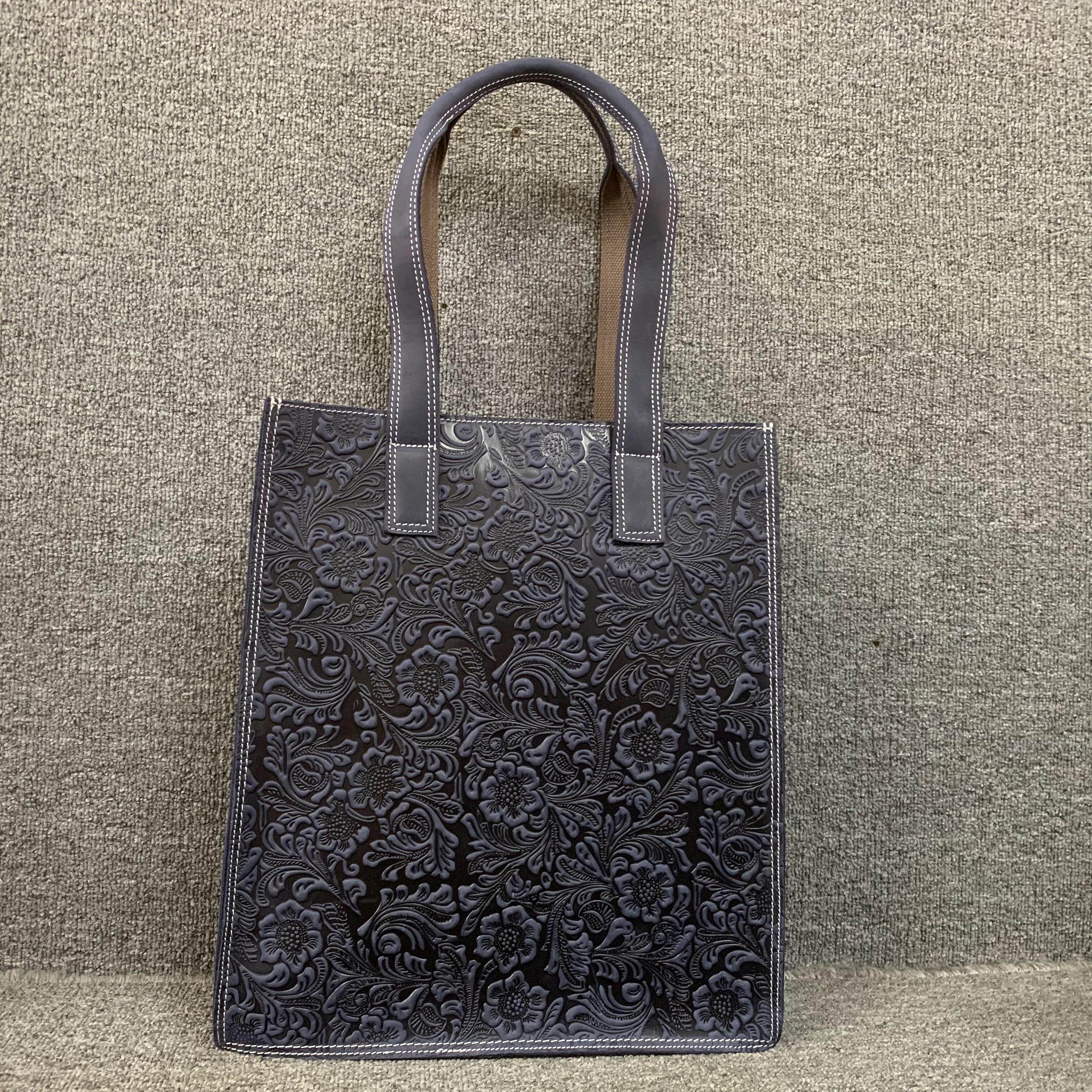 复古设计质感~~百搭牛皮包韩版头层疯马牛皮压花女手提实用托特包
