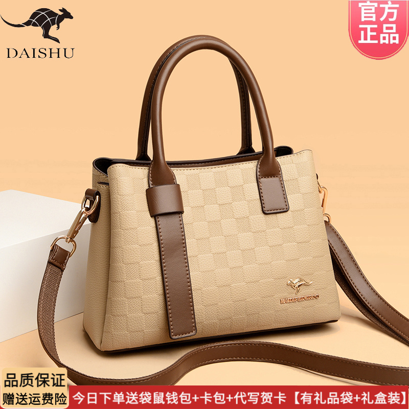 袋鼠专柜复古手提包中年妈妈包女士斜挎包2025新款真皮包包大气潮