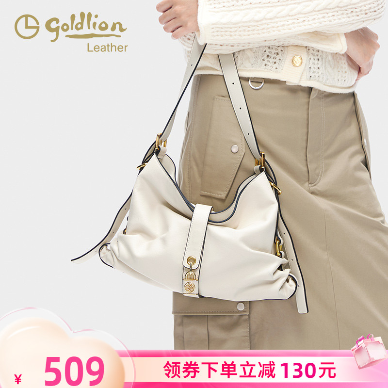 金利来真皮包包女2025新款牛皮单肩包简约百搭通勤大容量斜挎包软