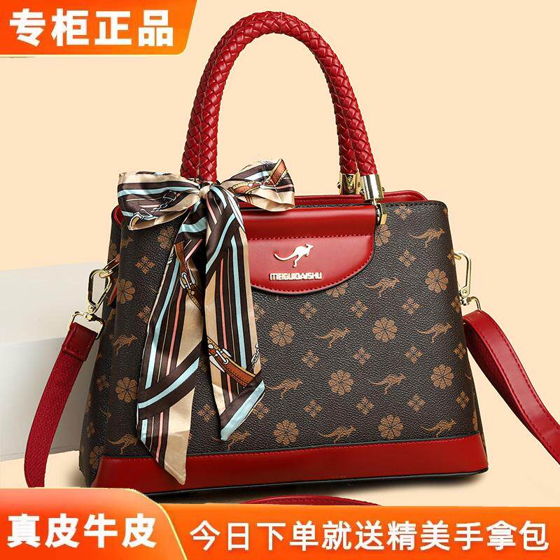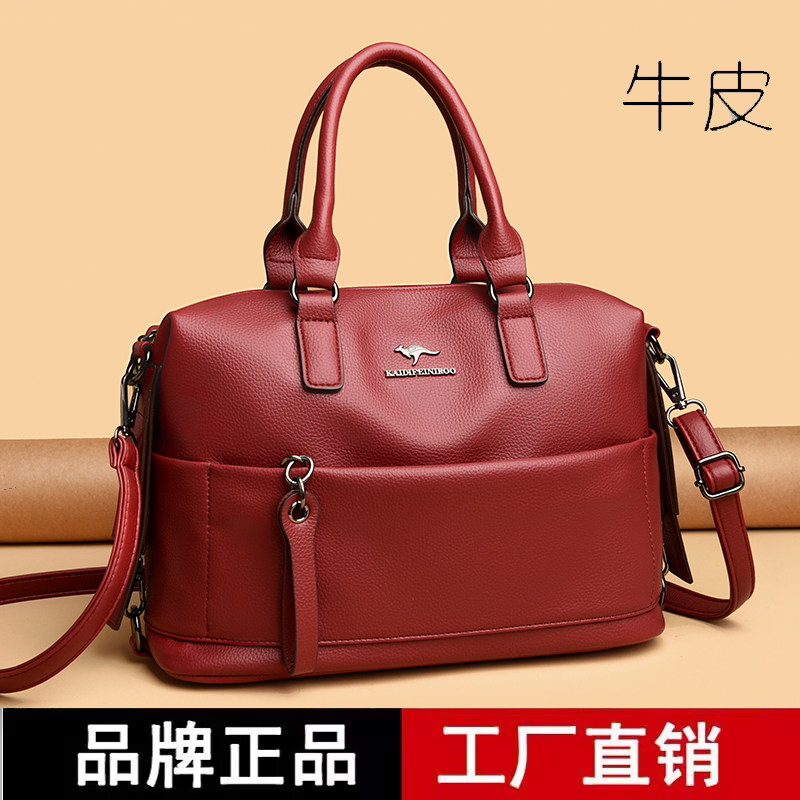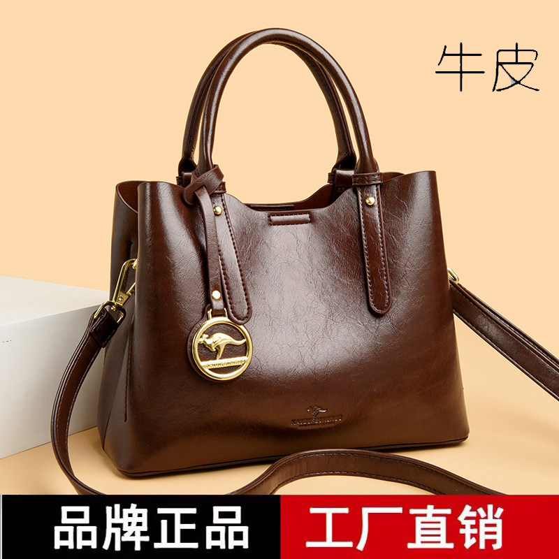 袋鼠真皮包包女2026新款女士手提包百搭单肩斜挎包大容量跨境女包