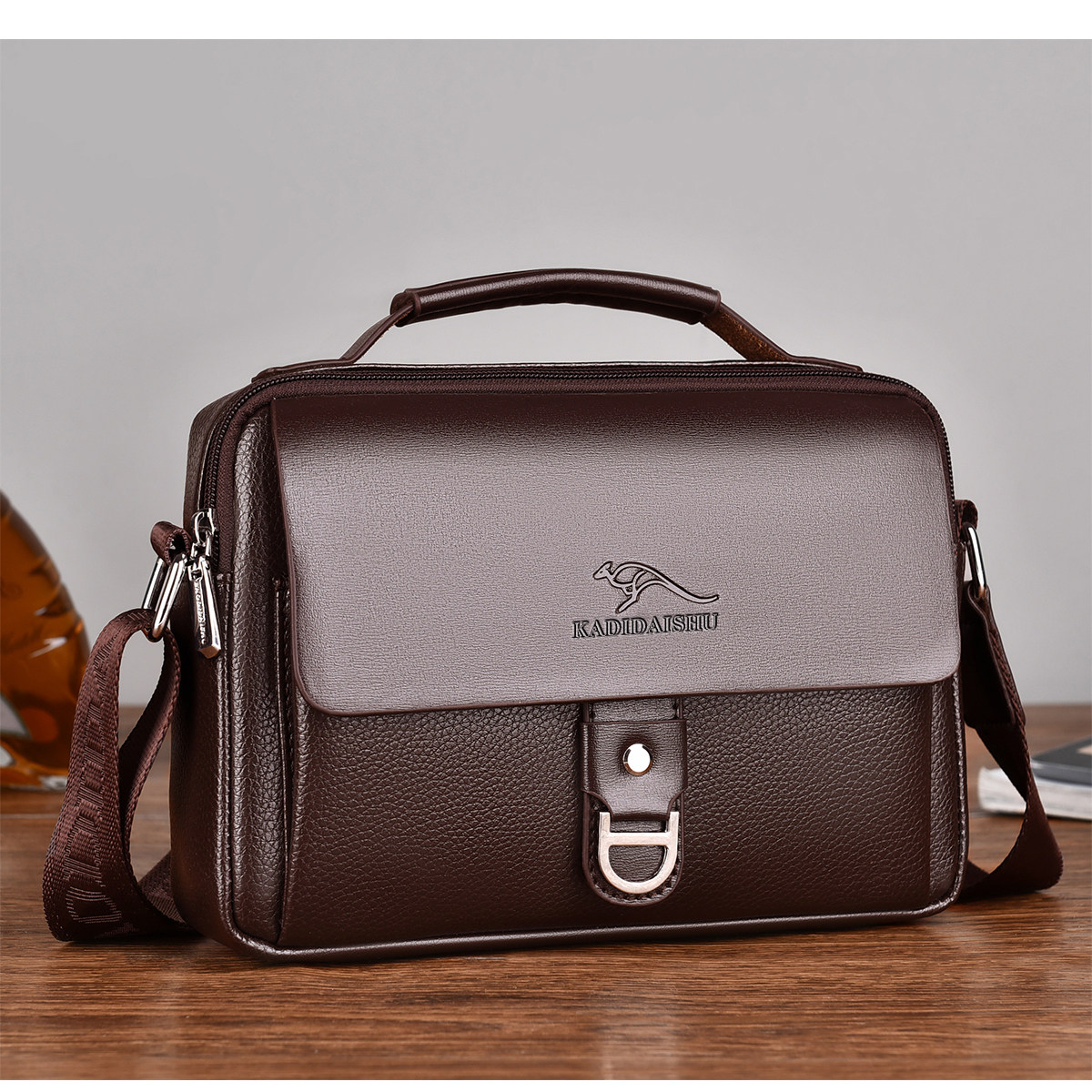 DENGBAI登白【胡可推荐】 头层牛皮荔枝纹单肩斜挎大容量包包