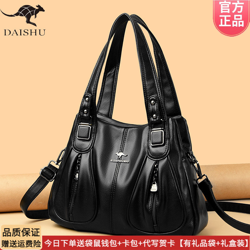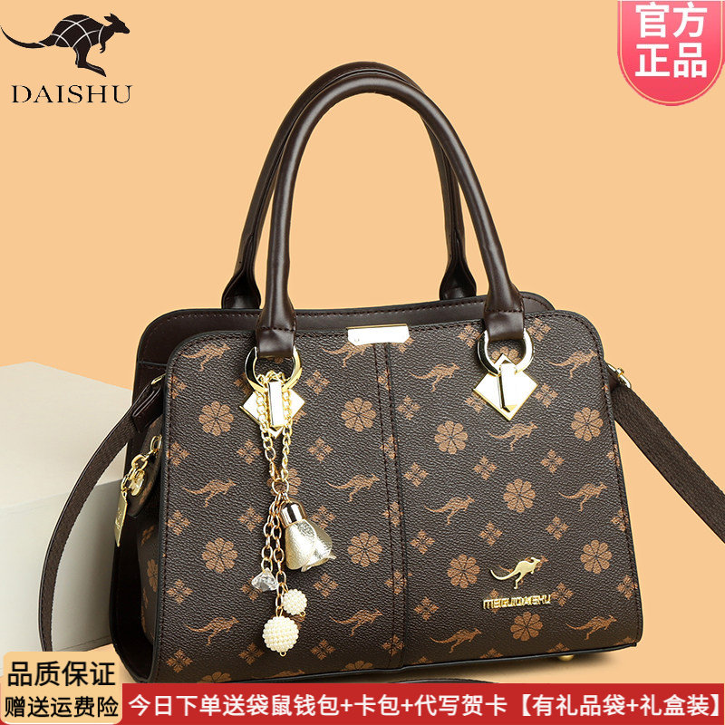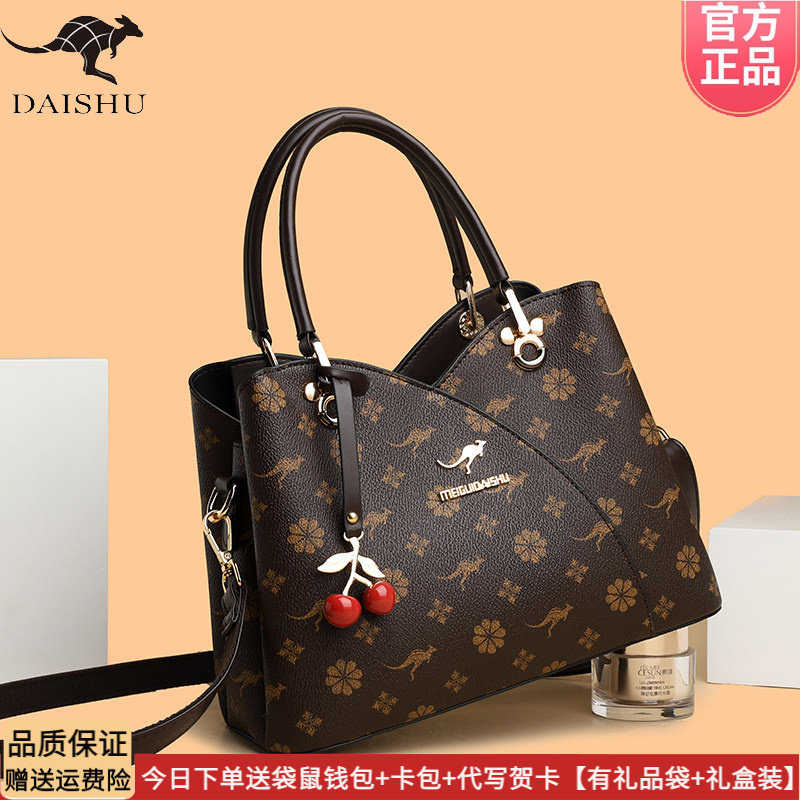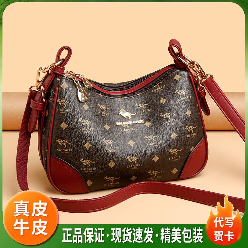 袋鼠正品女包2026新款真皮印花单肩包通勤百搭实用斜挎包软牛皮包