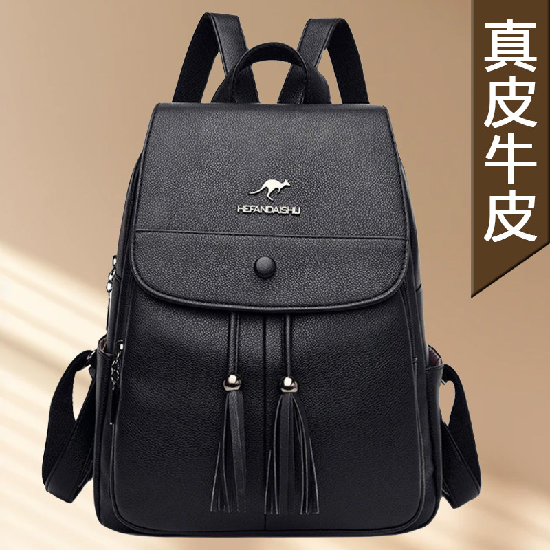 袋鼠品牌真皮双肩包女2026新款头层牛皮包包旅行大容量背包防盗