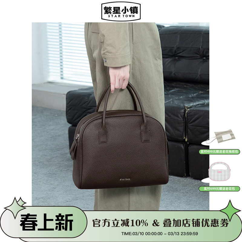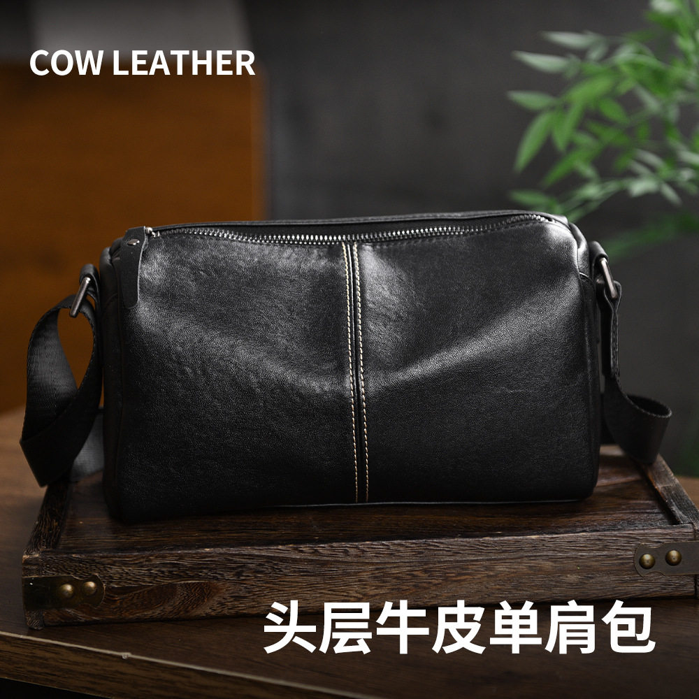 头层小牛皮包包小众复古背包托特通勤松弛真皮单肩斜挎手提邮差包