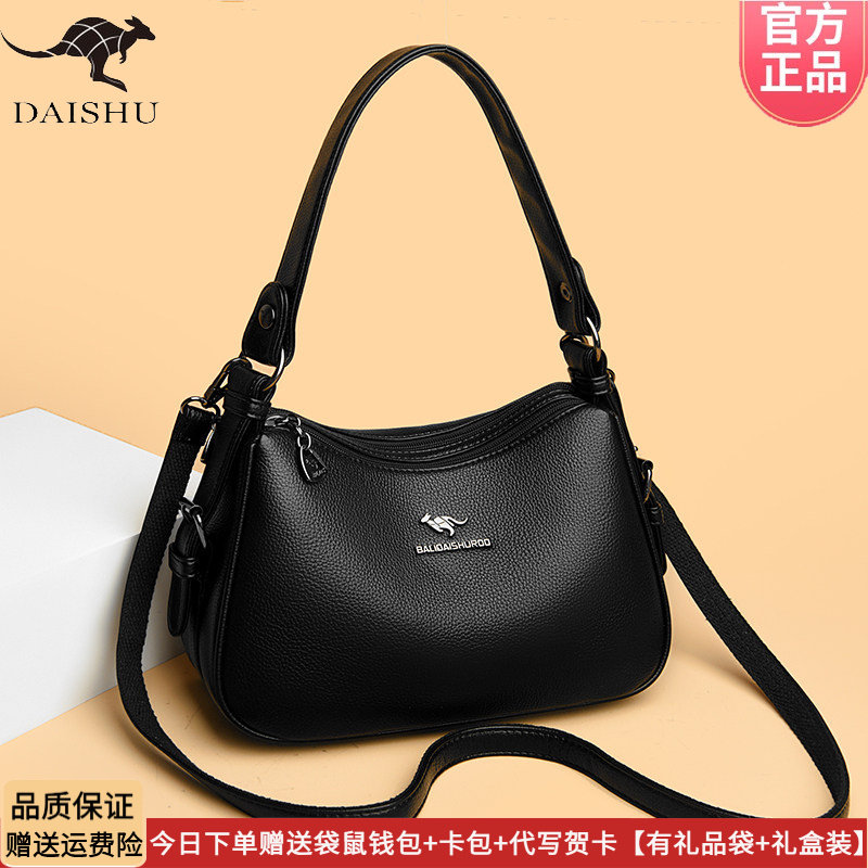 品牌袋鼠女包2026新款手提斜挎包时尚软皮包送礼长辈精美节日礼物
