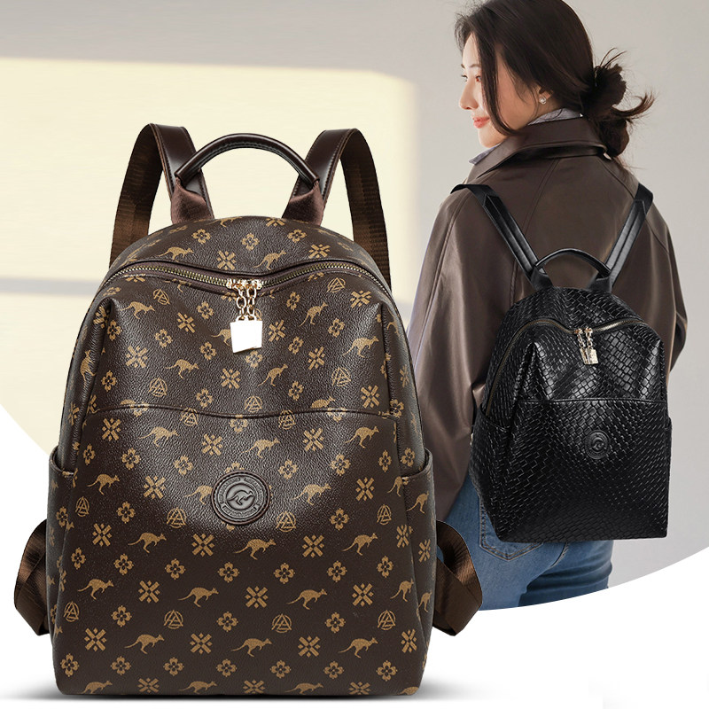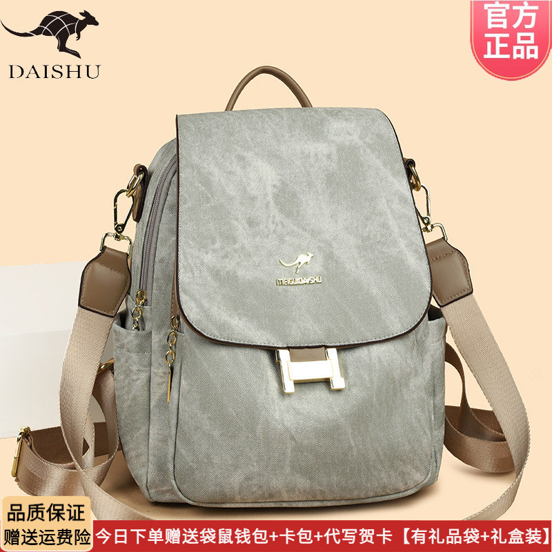 袋鼠皮包双肩包女2026新款时尚旅行旅游轻便双肩背包女士大容量