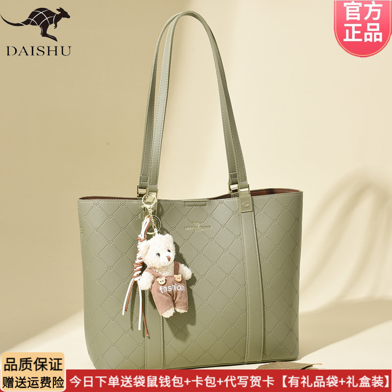 正品袋鼠皮包女包托特包2025冬季新款通勤大容量时尚中年软皮单肩
