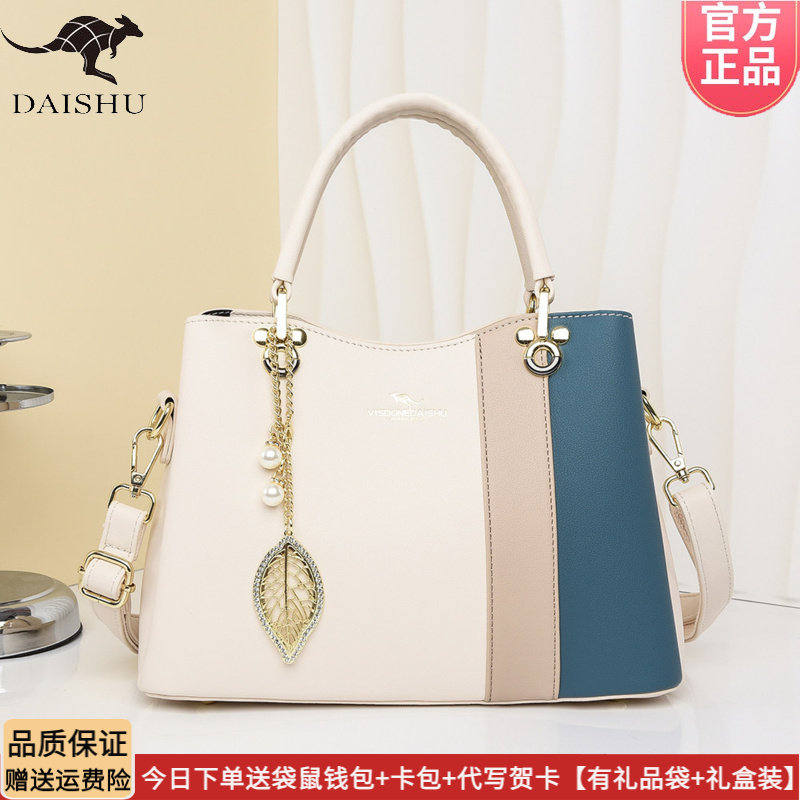 正品袋鼠手提包女士斜挎包2026新款时尚百搭软皮包包日常便携通勤