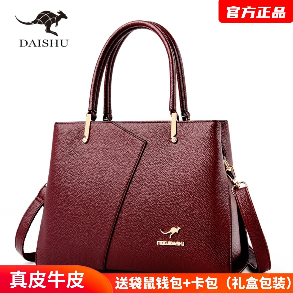袋鼠真皮包包女2025新款中年大气手提包女大容量结婚包送妈妈礼物