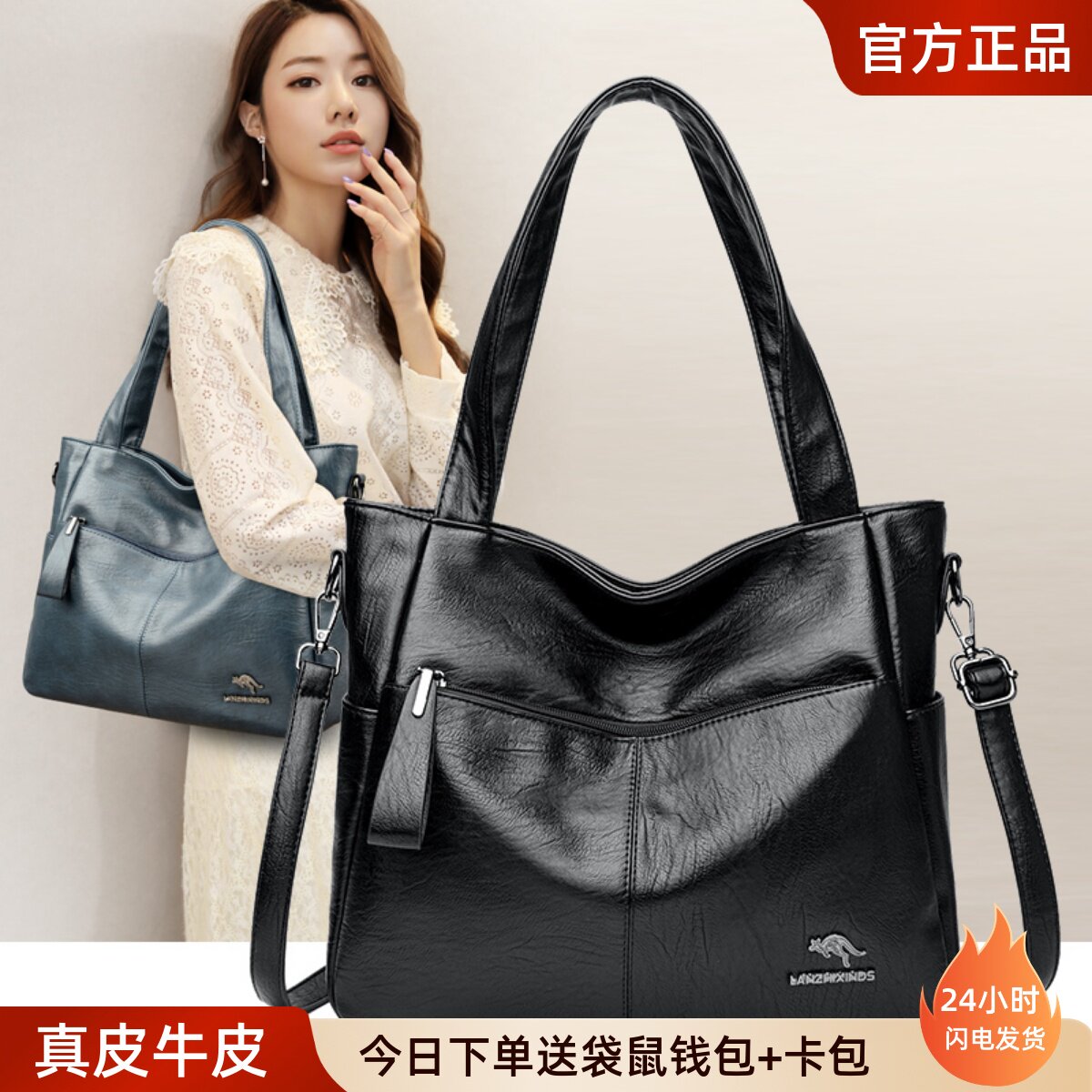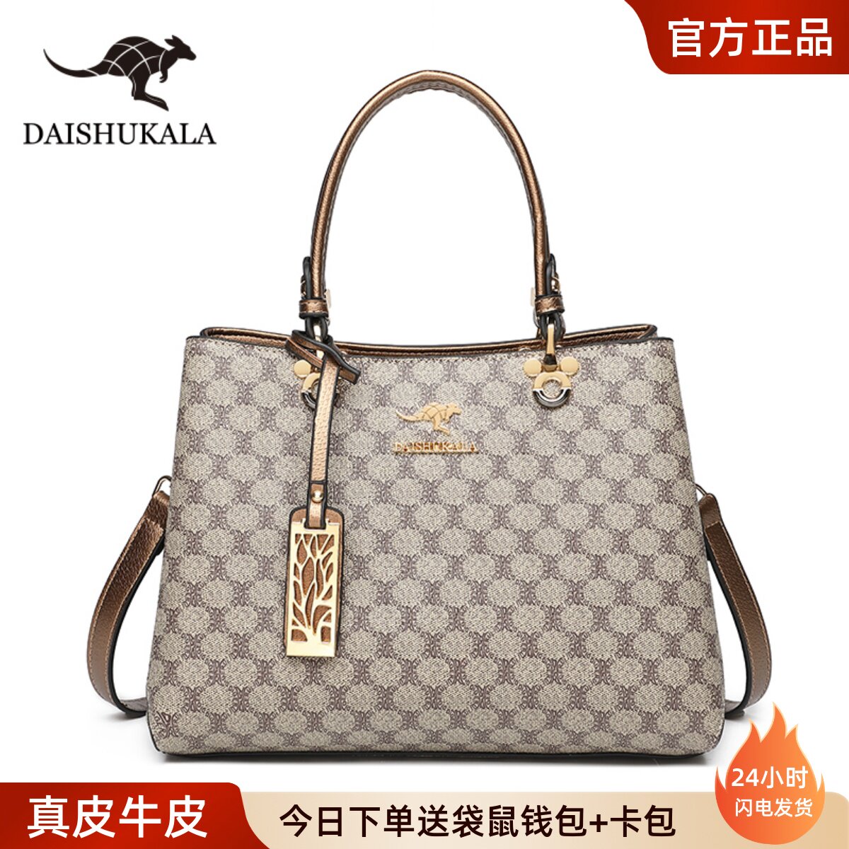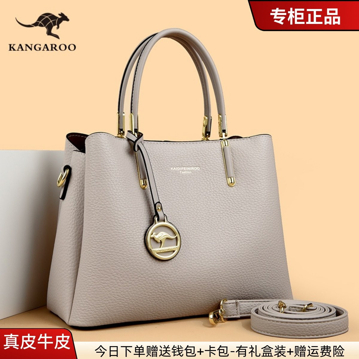 品牌袋鼠牛皮时尚手提女包包2025新款真皮包斜挎大容量送妈妈包包
