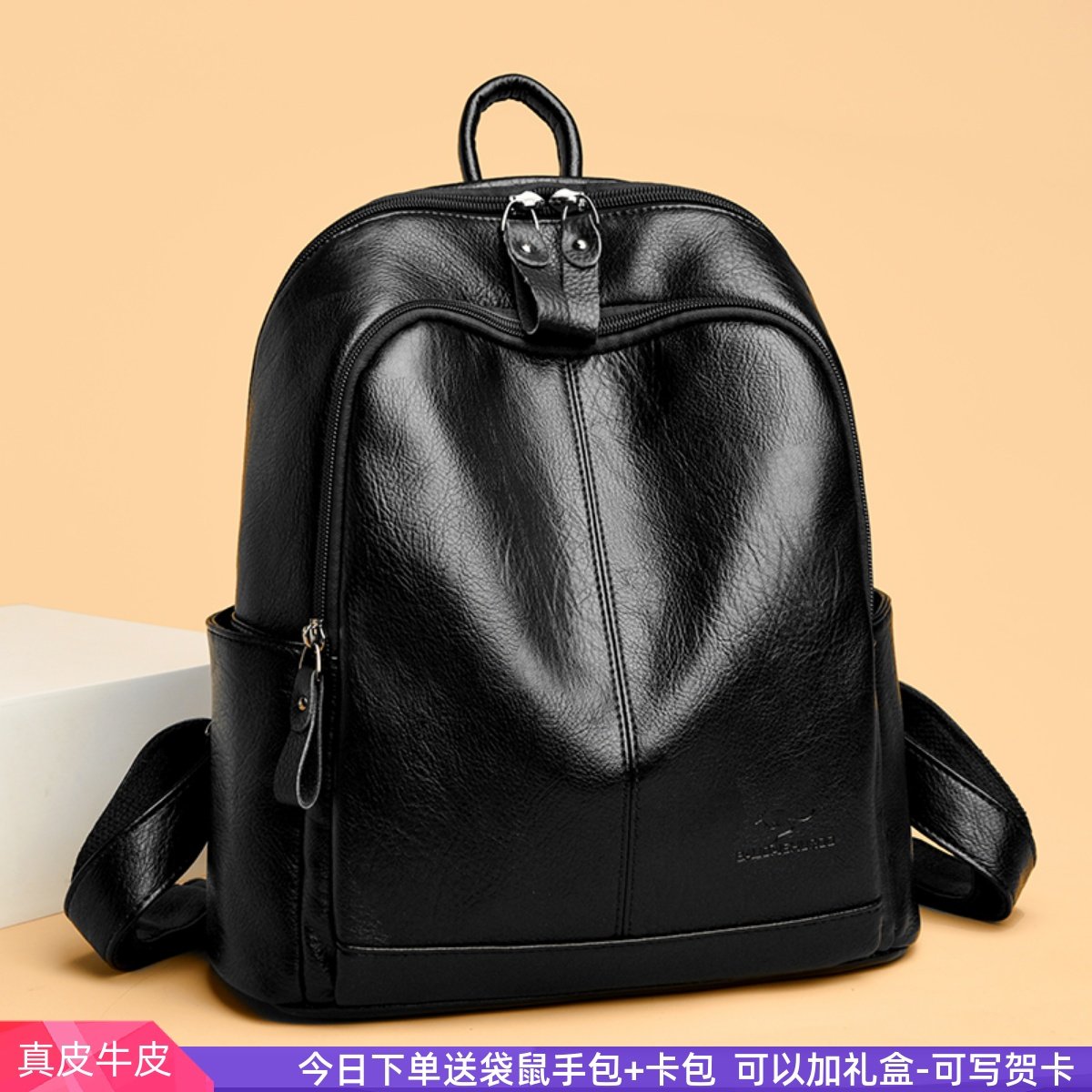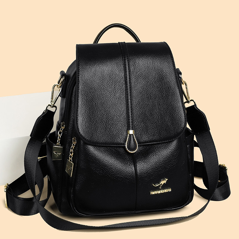 袋鼠女士双肩包2026新款真皮大容量旅游背包韩国百搭软牛皮包