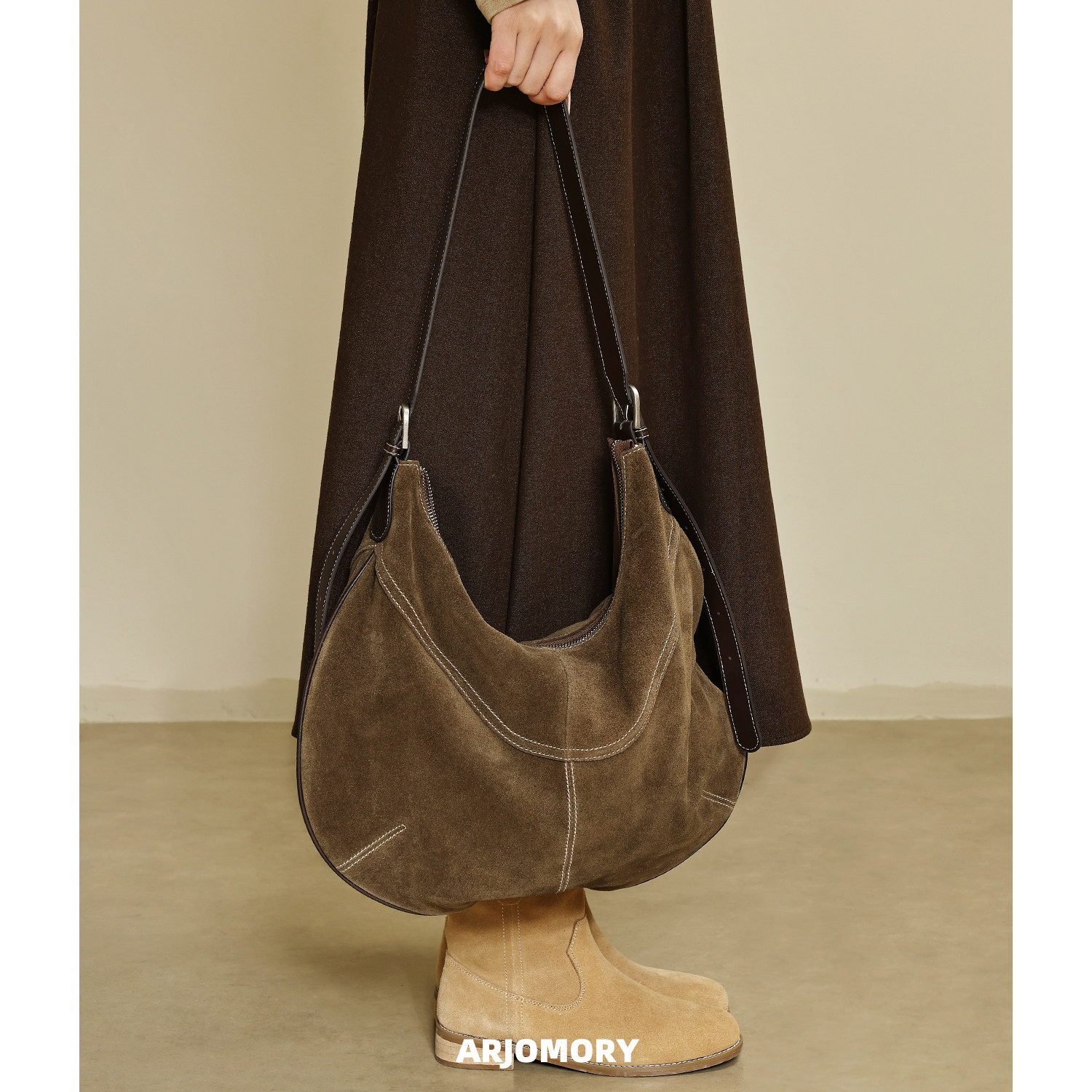 ARJOMORY原创设计麂皮绒月牙腋下包女2025秋冬新款通勤百搭斜挎包