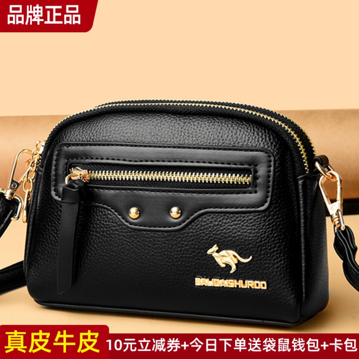 袋鼠真皮斜挎包女包2025新款斜挎小包单肩包女休闲包包软牛皮包