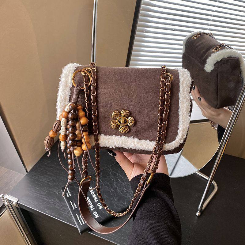JAC复古毛毛包包女2026新款冬季麂皮包大容量托特包单肩斜挎包女
