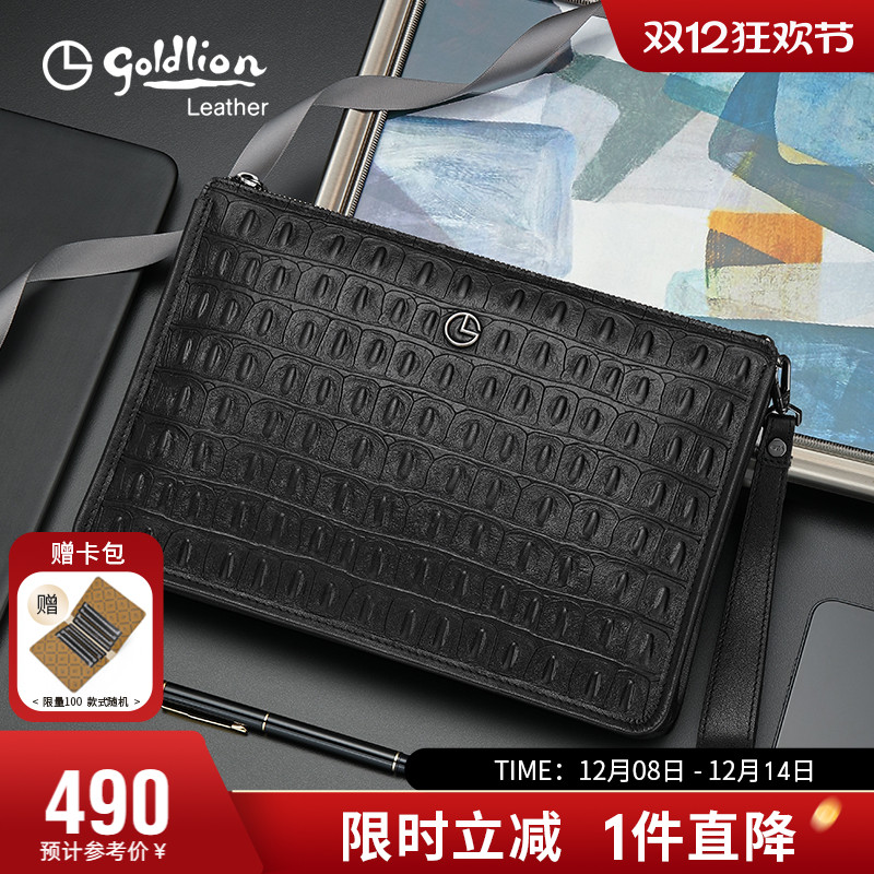 金利来手包新款真皮手拿包男士鳄鱼纹牛皮包商务轻奢大容量手抓包