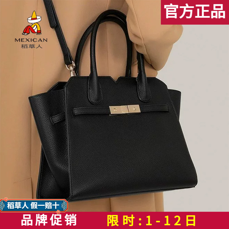 稻草人牛皮包包2025新款手拎包菱格托特包百搭女士单肩斜挎包正品
